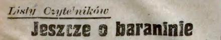 Potraw z baraniny, jako też z jagniąt, jest bez liku, ale trudno podać zbyt wiele przepisów w skromnym liście do redakcji.