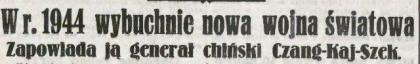 W tym samym numerze IKC moją uwagę przyciągnął tytuł, który muszę pokazać, tak jest ciekawy. Wieszczy bowiem przyszłość i nadchodzącą drugą wojnę światową. Autor proroctwa pomylił się tylko co do roku, no, ale patrzył z perspektywy roku 1929. Nie przeczuł, że wojna się rozpocznie już za dziesięć lat, on dawał mocarstwom więcej czasu na zbrojenia: