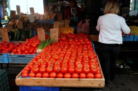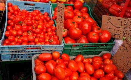 W tym roku – a trudno w to uwierzyć – towarów jest jeszcze więcej. Na przykład pomidorów. Rozmaitość. Od dużych malinowych, a nawet brzoskwiniowych, po maleńkie czereśniowe czy koktajlowe. Sprzedawcy na ogół potrafią doradzić, które są dobre na sałatkę, które lepsze na sos, z których warto robić przetwory na zimę, a z których ugotować zupę.