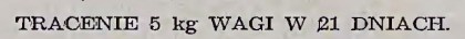 Zbytnia tusza nigdy nie jest zdrowiem. Obciąża serce, męczy je, utrudnia poruszanie się, wpływa ujemnie na sprawność fizyczną człowieka. Zasadniczymi walorami estetyki są: linia, elastyczność, lekkość. Podamy więc naszym Czytelniczkom dwa sposoby prowadzenia racjonalnej diety. Oba są równie dobre. Jeden wymaga 3-ch tygodni na stracenie 5 kg wagi, drugi dłuższego czasu, w którym jednakże można osiągnąć różnicę 10 kg. Nie należy się zniechęcać tym, że menu diety są cokolwiek jednostajne. Zasadą tracenia wagi jest regularne odżywianie się, względna jednostajność przyjmowanych pokarmów i przeprowadzanie kuracji z cierpliwością.