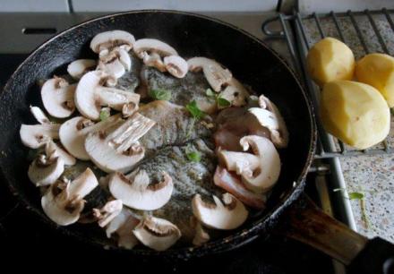 Oczyszczonego lina rozpłatanego i w kawałki pokrajanego włożyć w rądel [tak pisano!], kładąc na pół kilo lina 10 deka masła, trzy pieczarki pokrajane w cienkie plasterki, trzy kartofle także cieniutko pokrajane i sparzone poprzednio, oraz jedną cebulę w plasterki krajaną, posypywać pieprzem.