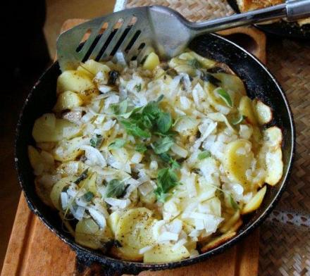 Przepis zaczerpnęłam z książki o tytule „Kucharz polski, 1635 praktycznych przepisów smacznych, tanich i wystawnych obiadów…”. Mam reprint jej ósmego wydania z roku 1932. Autorką jest Maria Śleżańska (zm. 1890), pochodząca z Wielkopolski. Jej książki ukazywały się w Poznaniu w wydawnictwie znanych drukarzy Leitgeberów, z którymi łączyły ją, zdaje się, związki rodzinne. W dwudziestoleciu międzywojennym były popularne i wykorzystywane. Powielają potrawy obecne i u Marii Monatowej, i u Marty Norkowskiej, i u Lucyny Ćwierczakiewiczowej. Jej przepis na lina wydał mi się najciekawszy, bo bardzo prosty i zachowujący naturalny smak ryby, pieczarek i ziemniaków. Nie przyprawia tego zestawu maderą czy przyprawą Maggi, występującymi np. u Monatowej. Gotowa potrawa wygląda może mało efektownie. Ale jest bezpretensjonalna. Można ją podać w naczyniu, w którym była przyrządzona. Jeżeli ją zapieczemy, można to zrobić w naczyniu nazywanym nelsonką. Jeżeli dusimy – podajemy w rondlu lub głębokiej patelni. Tak było u nas. Patelnia wjechała na stół.
