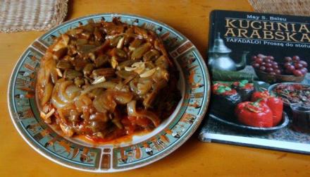 Nie da się przygotować tej potrawy bez jednego szczególnego składnika warzywnego. To okra, czyli ketmia. Popularna w kuchni arabskiej, zwłaszcza w Iraku, gdzie rośnie jej bardzo dużo. Podaję tę informację na odpowiedzialność May S. Bsisu, autorki „Kuchni arabskiej”, którą niedawno tu przywoływałam. Obiecywałam opisać warzywną przystawkę i obietnicę wypełniam. Danie jest bezmięsne. Może stanowić także cały obiad.