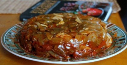 Nie gotowałam potrawy, ponieważ obawiałam się, że nawet najmniejszy płomień gazu w mojej kuchence okazałby się zbyt duży. Zapiekłam ją w żaroodpornym naczyniu, które nadało jej kształt. Po przestudzeniu docisnęłam obciążonym talerzykiem, aby warstwy się dobrze połączyły i tak trzymałam w lodówce. Ostrożnie przełożyłam na talerz tuż przed podaniem. Nie przybrałam plasterkami cytryny, ponieważ o tym… zapomniałam. Następnym razem się poprawię. A może gdzieś znajdę świeżą okrę? Wtedy na pewno danie zyska. Z tą suszoną było za dużo zabawy, a i chyba nie rozwinęła pełni smaku. Poza tym – poytrawę polecam. To świetna przystawka albo oryginalne danie obiadowe. Podajmy do niego stylowe chlebki pita albo pieczywo pszenne.