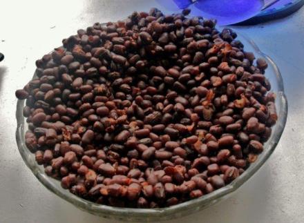 Kupiłam brązową fasolę adzuki i właśnie z niej stworzyłam danie będące jakimś krewniakiem chili con carne. Mięsem były paseczki wołowiny, zamiast chili użyłam peperoncino. Gotowanie można skrócić używając szybkowaru. Trzeba wtedy jednak uważać, aby fasola się nie rozgotowała.