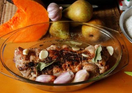 Gruszki trzeba od razu posmarować olejem lub skropić cytryną, aby nie sczerniały. Można je trzymać w naczyniu z zimną wodą. Naczynie żaroodporne, w którym wstawiamy tę jarzynkę, trzeba wysmarować olejem. Gruszka piecze się błyskawicznie, ale dynię warto nakłuć patyczkiem i sprawdzić, czy się dopiekła. Jagnięcina z taką jarzyną to danie efektowne, ale, niestety, z powodu ceny tego mięsa nie tanie. Ale raz na jakiś czas, gdy chcemy domownikom poprawić humory – wysadźmy się na nie. Mięso pewnie zostanie na następny obiad. Tylko jarzynkę trzeba będzie szykować inną, gruszki z dynią znikają w całości.