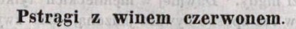 Na koniec sposób na pstrąga z roku 1881. Pochodzi z pisma „Gospodyni Miejska i Wiejska”. Zajmowało się różnymi sprawami gospodarczymi, propagowało nowoczesne metody upraw, hodowli, ale dawało także ciekawe przepisy kulinarne, pomieszczone w specjalnym dziale, nazwanym wdzięcznie: