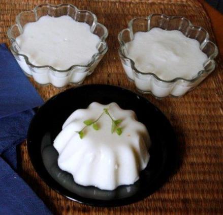 Wodę zagotowujemy z cukrem i łyżeczką agaru, cały czas mieszając. Odstawiamy do przestygnięcia na 10–15 minut, do czasu do czasu mieszając. Łączymy z kwaśnym mlekiem, dokładnie je roztrzepując. Wychładzamy, wstawiamy do lodówki.