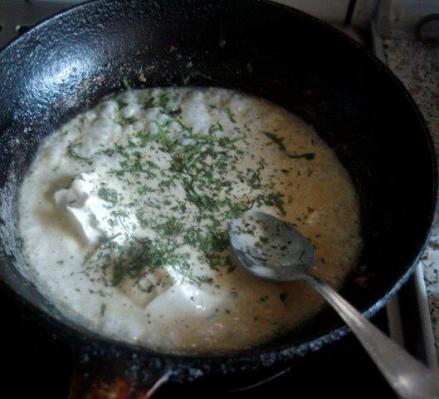 Masło rozgrzać. Ryby obtoczyć w mące. Smażyć szybko na kolor jasnozłoty. Zdjąć z patelni. Na gorącą patelnię po smażeniu ryby wlać nieco wina, rozprowadzić nim resztki ze smażenia, dołożyć gęstą śmietanę i wsypać estragon. Wymieszać na gęsty sos, ma go być niewiele.