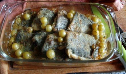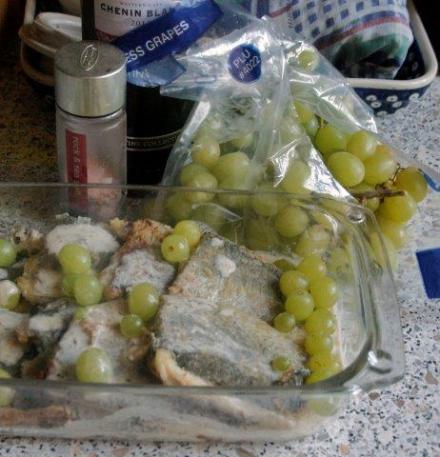Pstrąg z winogronami w sosie winnym
