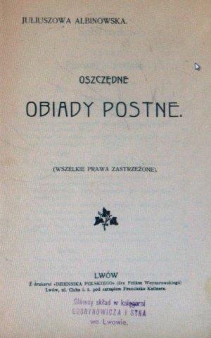 Dziś po wysłuchaniu różnych zdań i pewnem doświadczeniu odczuwam brak powyższy [opisania potraw na post] tem mocniej, gdy widzę, jak liczne domy z winy gosposi naszych zatracają święty nasz obrządek i tradycye matek i babek naszych, nie szanując dni postnych. Cała generacya wyrasta, uważając zachowanie postów za przesąd i rzekomo zbytek zamożnych, gdyż niejedna gospodyni twierdzi, że zachowując dziś post, „nie mamy co jeść”. O mylności tego zapatrywania ma przekonać ta książeczka, która okazuje dowodnie, ile rozmaitości i pożywności obiad postny w sobie mieści i jak tanim kosztem może troskliwa gosposia posilić rodzinę i urozmaicić żywność swoich stołowników.