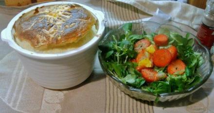 Do tego sufletu podałam sałatę. Za pierwszym razem z rukoli, za drugim bardziej fantazyjną: z łagodniejszej roszponki z pomarańczami i truskawkami.