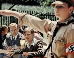 Zaczął się marsz, który filmowym językiem, w skrócie, tak poruszająco pokazała słynna scena z filmu. Występ anielskiego blondynka w sielskiej gospodzie, do śpiewu którego przyłączają się kolejno wszyscy Niemcy.