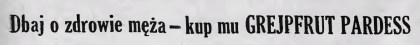 Owoce cytrusowe, czyli pomarańcze i grejpfruty, sprowadzano wówczas z Palestyny, czyli z dzisiejszego Izraela. Stworzone tam od nowa i uprawiane z zapałem sady, czyli pardesy, przyczyniały się do wzrostu gospodarczego tego państwa, wtedy zależnego od Anglii, ale wybijającego się na niepodległość. Wspomagano je, jedząc grejpfruty. A propagowały je liczne wtedy diety gwiazd filmowych. Opisywano, że na śniadanie, do kawy, spożywają połówkę tego owocu, na obiad zaś liść sałaty, chudziutki befsztyk i znowu grejpfruta, podobnie na kolację. A jeżeli nie grejpfrut w połówce, to chociaż sok świeżo z niego wyciśnięty.