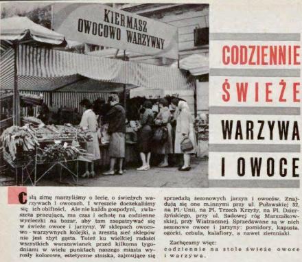 Najpierw nieco teorii, a raczej prostej prasowej zachęty do tego, aby po warzywa sięgać. Zachęta pochodzi z roku 1961 i zmieścił ją warszawski ilustrowany tygodnik – „Stolica”. Bardzo cenny, zgromadził masę cennych zdjęć i informacji o Warszawie, jej odbudowie i dniu codziennym! Z notki o warzywach nie wyczytamy, dlaczego warto nie sięgać, ale dowiemy się lub sobie przypomnimy, gdzie można było je kupować i jakie. Oczywiście w roku 1961.