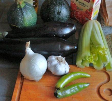 Dzisiaj mamy większy wybór warzyw. Ale czy są lepsze? Warzywa i owoce trafiają do naszych sklepów z całego świata. Nie łudźmy się, często i na sympatycznych tradycyjnych bazarach sprzedawcy mają w skrzynkach te same dobra, które oferują hipermarkety. Choć zdarzają się wyjątki i. oczywiście, możemy szukać nowalijek ze swojskich upraw. Muszą kosztować więcej; czy są zdrowsze, czy smaczniejsze? Kto ma czas, może się pokusić o porównywanie. Mój zestaw warzyw do duszenia – takie i są szybkie do przyrządzenia, i smaczne – zmienia się w zależności od zawartości lodówki. Dzisiaj miałam cebulę, czosnek i selera naciowego (stali dyżurni), młode bakłażany, a więc smukłe, nie pękate, okrągłe cukinie (taki gatunek), samotną marchewkę i coś do przyprawienia oraz nadania ostatniego szlifu temu zestawowi.