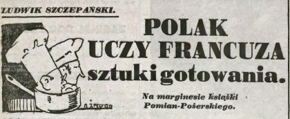 Prof. Pożerski pod pseudonimem de Pomiane (nazwa herbu) ogłosił kilka książek kucharskich, o charakterze popularnym, dostosowanych do potrzeb małych i średnich, oszczędnych gospodarstw i wygłasza także stale przez radjo tygodniowe pogadanki kulinarne. I tak ten Polak (który w życiu kolonji polskiej w Paryżu bierze żywy udział i utrzymuje też łączność z nauką polską) stał się mistrzem, który uczy Francuzki i Francuzów kunsztu gotowania, mistrzem w kraju, który przecie zawsze przodował światu w dziedzinie kuchennej i w którym dziesiątki, ba, setki uczonych amatorów, sławnych literatów i artystów praktykowało i praktykuje sztukę kulinarną i ogłasza cenne książki lub przepisy kucharskie. Nie jedyny to zresztą dziś Polak w Paryżu, słynący z mistrzostwa kuchennego; głośny jest tam także inżynier górniczy, Babiński, który pod pseud. „Ali Bab” ogłasza książki, uczące sztuki wyrafinowanego skomplikowanego smakoszostwa. [Inżynier Henri Joseph Séverin Babinski (1855–1931) był synem Polaka, powstańca styczniowego]. Przy tej sposobności wspomnieć też nie będzie od rzeczy, że ci parysko-polscy naukowcy i praktycy kulinarni mają w Warszawie godnego kolegę w osobie Edwarda Szeligi, autora wybornej książki „Nowy kucharz doskonały”. Pod pseudonimem Szeligi kryje się zamożny wybitny przemysłowiec i ekonomista. [Był to Edward Natanson, ze słynnej rodziny finansistów i przemysłowców, rzutki biznesmen, założyciel fabryki papieru w Konstancinie-Jeziornie, wiceprezes przedwojennego Lewiatana, społecznik, dzięki któremu m.in. zbudowano np. gmach Politechniki Warszawskiej; książkę kucharską wydał w roku 1929].