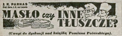 Jako jeden z niewielu już fachowców sztuki kulinarnej starej szkoły, były szef kuchni w poselstwach zagranicznych, pozwolę sobie dorzucić kilka słów do artykułu p. L. Szczepańskiego książce kucharskiej i jej autorze prof. Pożerskim w Paryżu. Co do tłuszczów, to wszystkie są dobre, zależy jednak do czego ich się używa. Do smażenia befsztyków, kotletów, nie obsypywanych tartą bułką i zrazów niesiekanych używa się masła, choćby dlatego, że łatwiej się rumienią. Do kotletów, sznycli cielęcych czy wieprzowych, obsypanych tartą bułką, można używać masła lub szmalcu. Smażone na szmalcu dobrze jest polać zrumienionem masłem. Do pączków najlepiej nadaje się szmalec, a jeżeli ma być masło, należy je wpierw sklarować przez wygotowanie części wodnych i oddzielenie szumowin. Frytury (z tłuszczu od nerek) silnie rozgrzane w głębokiem naczyniu stosuje się do smażenia różnych pasztecików, krokietów i kartofli w płatkach. Sosy najlepsze są na maśle z wyjątkiem sosu cebulowego, który lepszy jest na szmalcu.