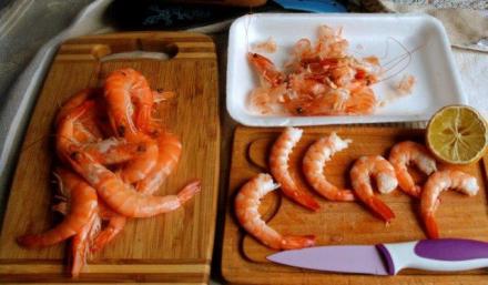 Zwykle staram się mieć w zamrażalniku zapasik krewetek mrożonych. Można z nich szybko przygotować smaczny posiłek. Ale nie zamrożone są znacznie smaczniejsze. Właściwie przypominają w smaku polskie raki. Są słodkawe, a gdy właściwie przygotowane jędrne i soczyste. Kiedy więc mamy nieco czasu na zabawę, aby podać krewetki w całości – takie kupmy. Możemy je albo obsmażyć czy obgotować i podać w całości, aby jeść je obierając ze skorupek rękami, albo podać już obrane. Podawanie w całości do stołu wymaga stosu serwetek, warto też postawić miseczki z wodą; dobrze w nie wkropić kilka kropli cytryny i włożyć jej plasterek. Zabawa jest wtedy z jedzeniem. Ale gdy tej zabawy chcemy uniknąć, po wstępnym obgotowaniu obierzmy krewetki przed właściwą obróbką. Jest to mozolne, ale się opłaci. Przy stole można się zająć już ich smakiem i miłą rozmową. A ręce pozostają czyste.
