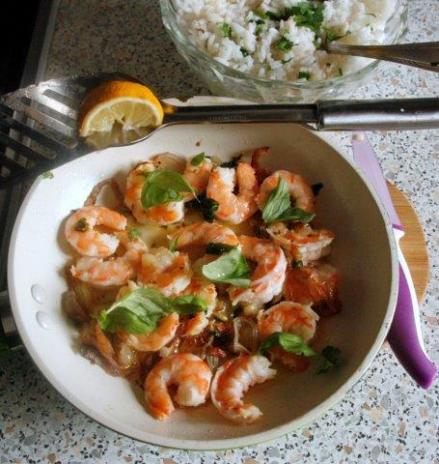 Krewetki z patelni z bazylią