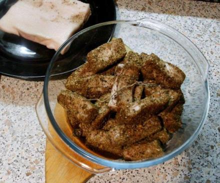 Kawałki słoniny natarte przyprawami trzymać kilka godzin w temperaturze pokojowej, aby nabrały smaku. Potem przechowywać w lodówce lub zamrozić.