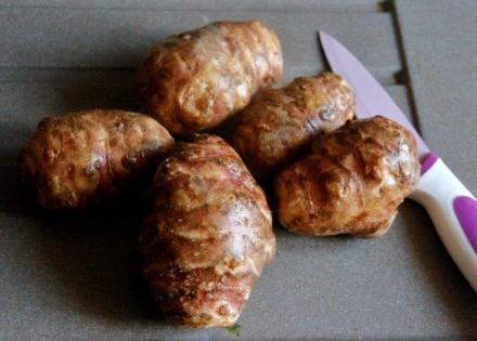 A w ogóle bulwy są bardzo zdrowe. Polecane zwłaszcza cukrzykom ze względu na niski indeks glikemiczny. Zawierają zdrowy potas, żelazo (poleca się podawać je dzieciom!), witaminę C i B1. Ich składniki sprzyjają odbudowywaniu odporności, pielęgnacji skóry, paznokci i włosów. W 100 g mają 76 kCal. A więc mogą je śmiało jeść schodzący z wagi. Aby schodzić z wagi z zadowoleniem i w dobrym zdrowiu. A ponieważ są bardzo ciekawe w smaku, polecam je i dla urozmaicenia naszych obiadów. Także tych świątecznych, podczas których będzie można opowiedzieć o wszystkich pożytkach z topinamburów. Czyli z bulw.