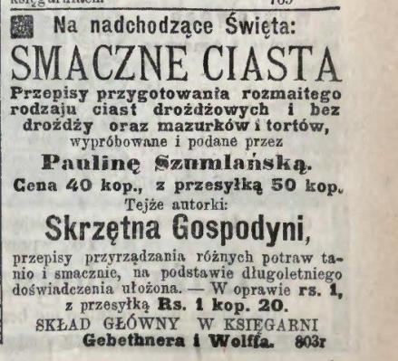 Widocznie tradycyjny nasz zwyczaj urządzania „święconego” coraz więcej wchodzi w użycie za granicą, gdyż jeden z tutejszych restauratorów otrzymał zamówienie na urządzenie i wysłanie do Paryża kompletnego święconego na kilka stołów, a jednocześnie prawie z kilku dalekich stron nadeszły żądania „polskich bab” w różne inne strony. W liczbie zamówień znaczny transport bab i mazurków ma być wysłanym do Rzymu, gdzie stale przebywa kilka rodzin polskich.