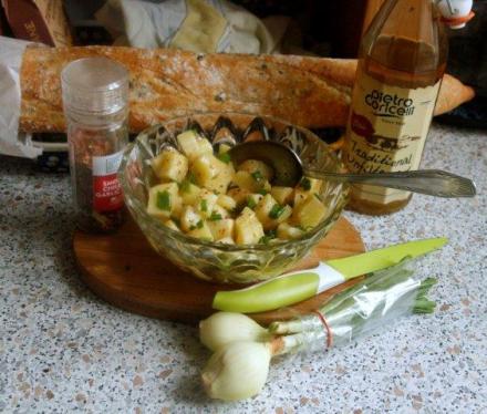Pasternak umyć, gotować w osolonej wodzie 10–15 minut ze skórką lub obrany. Ugotowany pokroić w kostkę. Wymieszać ze szczypiorem z dymki i cebulkami. Doprawić oliwą. Podawać na gorąco, ale można i po przestudzeniu, jako sałatkę.