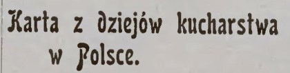 W wieku XV (pisze Aleksander Maciejowski w dziele swojem „Polska aż do połowy XVII wieku pod względem obyczajów i zwyczajów”), jeszcze mieli Polacy za specyał podpłomyki, na węglu pieczone, tudzież kawalce baraniny. Wtedy gęś wielce ceniono i raczono nią gościa, postawiwszy mu ją smażoną, albo postawiwszy mu inną jaką pieczeń lub groch z jagłami, tudzież donicę z piwem, natarłszy weń pieprzu i włożywszy grzanek. Ale w wieku XVI, kto chciał gościa uraczyć, powinien był cały tydzień nad tem myśleć, kramy i apteki, gdzie cukry sporządzano, zwinszować, trzykroć do żyda się udawać i mu się spowiadać – bo, ażeby pieniędzy pożyczył, trzeba mu było wystawić stan majątku. Wtedy nie każdy śmiał się targnąć na to, ażeby dał ucztę; bo trzeba było wystąpić na niej z potrzaskami (półmiskami) i pozłocistemi główkami.