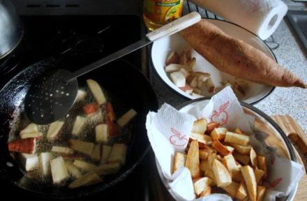 Może i najczęściej pataty się piecze. W blogu opisywałam kiedyś szalone pieczenie po amerykańsku – z syropem klonowym i piankami marshmallows. Nie każdemu to połączenie zasmakuje, ale wnuków może zachwycić i otworzyć im oczy na nowe doznania kulinarne. Wszystkich chyba jednak zadowolą pataty smażone tak jak frytki. Chrupkie, od ziemniaków słodsze, a na pewno może ciekawsze.