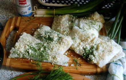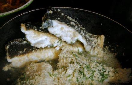 Dorsz w panierce migdałowo-koperkowej z kurkami po mojemu