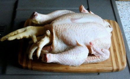 Aha, z łapek oraz podróbek, które znalazłam w tuszce, oraz z szyjki, kuperka i końcówek skrzydełek ugotowałam zupę z młodych jarzynek. Gdyby się chciało podać rosół, należy odciąć kości grzbietu. Zostają wtedy piersi i udka, które naciera się zmiażdżonymi porzeczkami.