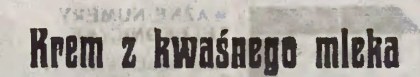 Nieznany u nas krem z kwaśnego mleka jest bardzo smaczny. Przyrządza się go w ten sposób, że bierze się pół litra kwaśnego (zsiadłego) mleka, rozbija się go trzepaczką, dodając po trochu 1/8 kg cukru-pudru, rozpuszczoną żelatynę i 2 łyżki esencji rumowej. Jeżeli krem ma być biały, wziąć 6 listków żelatyny białej, jeżeli zaś życzymy sobie mieć różowy, bierze się 4 listki żelatyny białej, a 2 czerwonej.