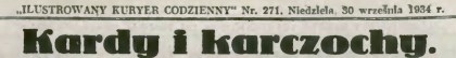 Teraz czas na teorię jeszcze późniejszą, a nam bliższą. Co o karczochach wiedziały nasze babcie lub prababcie? W roku 1934 karczochy przybliżał rodakom „Ilustrowany Kuryer Codzienny” piórem autora podpisanego M. S. S. Robił to na łamach cyklicznie ukazującego się dodatku o nazwie „Kuryer Ogrodniczo-Hodowlany”. Jest on dziś doskonałym źródłem informacji o tym, co przed wojną u nas uprawiano i jak pożytkowano różne gatunki warzyw i owoców. Jak zwykle, zachowuję ortografię oryginału. Nie usuwam z opisu drugiego warzywa mniej znanego, czyli kardów. Może je kiedyś i na moim bazarze wypatrzę i przyrządzę.