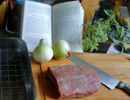 Deszczowa niedziela skłoniła mnie do wymyślenia obiadu, któremu trzeba (i można) poświęcić trochę uwagi. Mięsnego, rozgrzewającego, napełniającego kuchnię zapachem solidnej pieczeni. W sam raz na niepogodę. A że miałam kawałek mięsa wołowego nadający się na pieczeń – przypomniałam sobie o pieczeni, którą z miernym powodzeniem zrobiłam ostatni raz w roku… 1982. Potem do tego sposobu na wołowinę nie wracałam.
