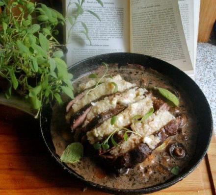 Wszystko dobrze, aby duszenie trwało tak długo, jak potrzeba. Ja jednak zrobiłam tę pieczeń jeszcze inaczej. Bez zbijania, solenia w fazie pierwszej, nieco inaczej rozkładając czas. Dodałam także dwa nowe smaki: pieczarek i szałwii.