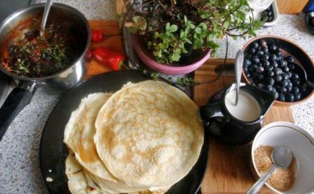 – Do naleśników na słodko: borówki amerykańskie i śmietana.