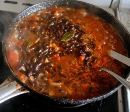 Suchą fasolę obgotować, wodę odlać. Zalać świeżą wodą, gotować do miękkości (ale nie może się rozpaść). Może to potrwać godzinę. Fasolę gotuje się bez soli.