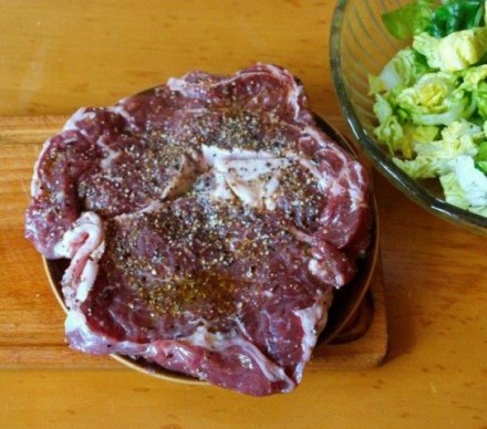 Taki kawałek mięsa wystarczy przyprawić pieprzem, posmarować oliwą i usmażyć na patelni grillowej lub na grillu. Użyłam pieprzu młotkowanego z kolendrą. To gotowa mieszanka jednego z producentów przypraw. Warto go poszukać.