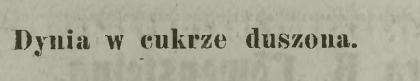 Wybrawszy piękną dynię niezbyt włóknistą, a dojrzałą, zdjąć z niej zwierzchnią skórę, wyrzucić ze środka ziarna i nasienie, mięso pokrajać w kawały, wrzucić je na wrzącą wodę, osoliwszy nieco i gotować przez pół godziny. Wyłożywszy ją potem na sito, odcedzić z wody jak najstaranniej. Im mięso z dyni mocniej się osuszy, tem jest lepsze. Roztopić w rondlu ćwierć funta świeżego masła, ułożyć na to plastry pokrajanej dyni, podlać mlekiem, jeżeli ma być podaną jako postna potrawa, a buljonem, jeżeli do mięsnego obiadu, dodać szczyptę soli, jeszcze filiżankę śmietanki i zagotować. Gdy sos zgęstnieje, ułożyć dynię na półmisku, oblać tym sosem i podawać do baranich kotletów.