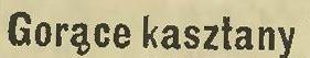 Gorące kasztany będziemy wyciągali z ognia – pani Lucyny, której, choćbyśmy wszystkie palce poparzyć sobie mieli, życzymy wszelkiego w nowem przedsiębiorstwie powodzenia, jak go życzymy wszelkiemu naszego self helpu objawowi. Trzeba bowiem wiedzieć, że od tygodnia, po rozmaitych punktach miasta, rozstawione zostały umundurowane i uzbrojone w piecyki z kasztanami pikiety zpod zawsze dzielnej komendy pani Ćwierczakiewiczowej. Firma jest najlepszą rękojmią, że sprzedawane pod jej flagą specyały nie będą ani przepieczone, ani niedopieczone. A kasztany wieczorem przy herbacie, to dobra rzecz, zwłaszcza gdy się wprzód skonsumuje jeden z 365-ciu obiadów…