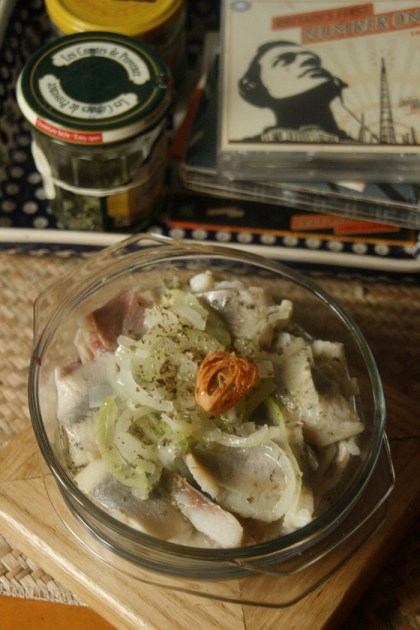 Na koniec króciutki przepis w sam raz na współczesne przyjęcie. Na śledzika. Zwracam uwagę na to, że nazwa łączy określenie charakteru przyjęcia (gdy jesteśmy zaproszeni „na śledzika”, wiemy z grubsza, że będą to zakąski pod wódeczkę) z przepisem na tę przekąskową rybkę.
