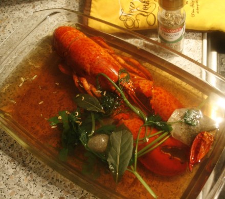 Surowe homary – czy żywe, sprawdza się zaglądając im w oczy oraz badając odruchy; tak radzą specjaliści – zaraz należy ugotować, inaczej „chudną i tracą na smaku”. Przed gotowaniem myje się je „szczotką ryżową”. Mira Michałowska w swej gawędziarskiej pozycji „Od kuchni i od frontu” zdradza sekret prawidłowego gotowania: przed wrzuceniem do wrzątku homara należy przywiązać do deski. Nie przywiązany wygina się tak, że trudno go potem wydobyć z mocnej skorupy. Bywa ona tak twarda, że poddaje się tylko mocnemu młotkowi. Brrr. Ale cóż: smakoszostwo zobowiązuje. (…)