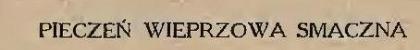 W pismach dla pań znalazłam jeden (tylko!) sympatyczny przepis na wieprzową pieczeń. Pochodzi z „Bluszczu” z roku 1927. Dział kulinarny prowadziła tam wtedy Elżbieta Kiewnarska, podpisująca się jako Pani Elżbieta. Była jednym z kulinarnych guru międzywojnia.