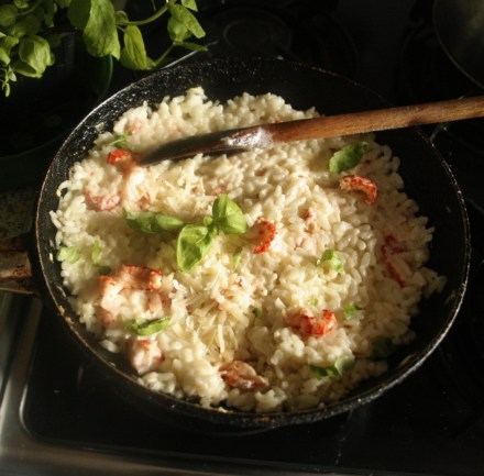 Ja na ciepło dałam ryż jeszcze inaczej przyrządzony. Bez tej słodkiej nuty, którą nasi przodkowie ukochali, i którą sama zwykle lubię. No, ale nie zawsze. Moje danie – a jest to kolejne risotto – możemy przyrządzić z okazji wyjątkowo uroczystej. Nie jest tanie, ale i nie przesadnie drogie. Musimy do niego kupić ogonki raków w zalewie. Jest to bowiem