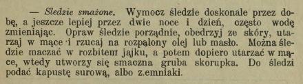 Proste i ciekawe przepisy na przyrządzenie śledzia podała w roku 1910 w „Tygodniku Mód i Powieści” jedna z wielkich księżnych kuchni polskiej, czyli Marta Norkowska. Ograniczam się do dwóch dań obiadowo-kolacyjnych ze śledzi przyrządzanych na ciepło.