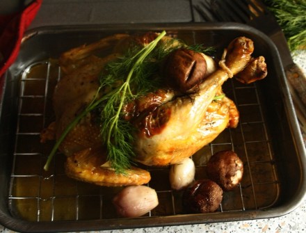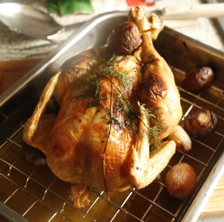 Proponuję bezpiecznego kurczaka w stylu domowej kuchni francuskiej. Przepis mógłby się zacząć słowami: „Weź kurczaka…”. Ale jakiego wziąć? ostatnio widuje się i rosołowe (zwykle z porcją podrobów), i zagrodowe, i wiejskie, a ja wypatrzyłam wśród drobiu „kurczaka z Périgord”. Wygląda dokładnie tak, jak drób sprzedawany we Francji. A region, z którego pochodzi jest znany z drobiu najlepszego. Karmiony specjalną paszą (czyżby z kukurydzą?) ma charakterystyczny żółtawy kolor skórki; dla mnie bardzo apetyczny. Podobno jest hodowany „tradycyjnymi metodami” i pochodzi z tzw. wolnego wybiegu. Dopowiem jedno: kulinarnie mnie zachwycił. Pięknie się upiekł osiągając pożądaną chrupkość skórki. Był soczysty i smaczny. A więc – do dzieła! Jeszcze jest czas, aby zdążyć go kupić i upiec.