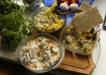 Pozostańmy jednak przy śledziach. Na pewno znajdą i obecnie amatorów. Zwłaszcza że kupimy je znacznie ładniejsze niż bywały w czasach, gdy można było dostać tylko te w skórach, mocno zasolone, ciemne, nieraz suche lub chude. To nie to, co przed śledzie przedwojenne – wspominała moja babcia. Dziś byłaby chyba zadowolona z matjesów, oszczędnie solonych (nie ma potrzeby moczyć ich przez dobę), jędrnych i zwartych. Wprawdzie są bez mlecza czy ikry, które dawniej także dodawano np. do zalewy, ale – coś za coś. Praktycznie kupuję już tylko matjesy. Zwłaszcza po pamiętnych doświadczeniach, gdy z pozornie dorodnych śledzi po zdjęciu skóry i oczyszczeniu z ości pozostały suche i postrzępione niby-fileciki. A więc mamy kilogram czy coś około tego filetów śledzi. Najpierw filety wymoczmy, najlepiej w zmienionej kilka razy wodzie, potem w mleku. Ile czasu je moczyć? To zawsze zależy od stopnia zasolenia śledzi. Po prostu trzeba je próbować. Gdy będą zbyt słone – poczujemy to. Ale nie można ich całkiem pozbawić soli. Jak w kuchni często, to kwestia doświadczenia. A co z nich zrobić? Dwie propozycje znalazłam w starej gazecie, trzecią wymyśliłam sama. Zapraszam!