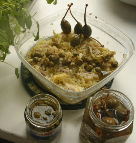 Pierwszego śledzia przerobiłam wiernie z przepisem (z wyjątkiem użycia mleczka). Zwracam uwagę, że oprócz kaparów w rozmiarze dobrze znanym, zastosowałam te duże (rozmiar XXL?), nazywane nawet jabłuszkami.
