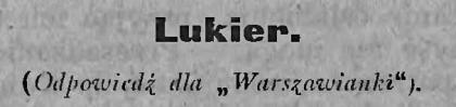 W przepisach kulinarnych – «Lukier» zamiast: wziąwszy na funt cukru 4 funty kakao – winno być: wziąwszy na funt cukru 1/4 funta kakao.